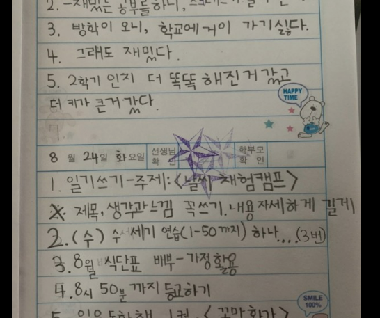 교문 앞에서 학원 홍보용 알림장을 받을 수 있습니다. 아이가 글씨를 쓸 만큼 줄 사이 간격이 넉넉한지 확인하고 사용하세요. 고학년용은 줄 간격이 좁습니다.